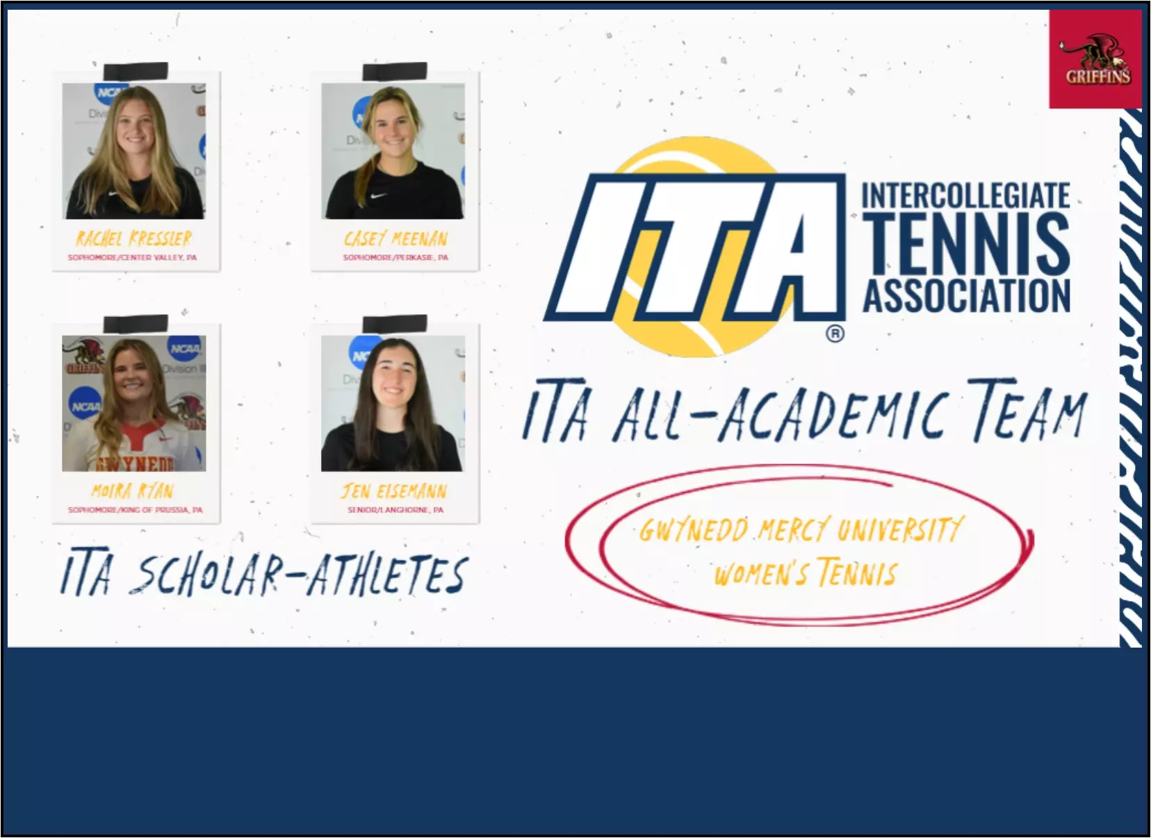 SOPHOMORE (2021-2022) – Kressler finished the season with a 2-5 Singles record that she divided between the third (0-3), fourth (1-1), fifth (0-1), and sixth (1-0) flights. In Doubles, she contributed to a 1-5 mark that included appearances in the first (1-2), second (0-1), and third (0-2) flights. She was named the Atlantic East Conference (AEC) Women’s Tennis Player of the Week on March 23 after contributing to an 8-3 win at number one Doubles and scoring a 6-2, 6-1, match-winner at number four singles.